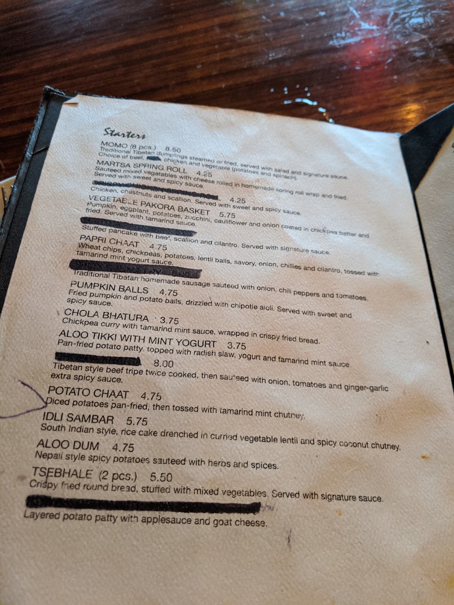 Traditional Tibetan dumpling streamed or fried, served with signature sauce. Filling contains potatoes and spinach.